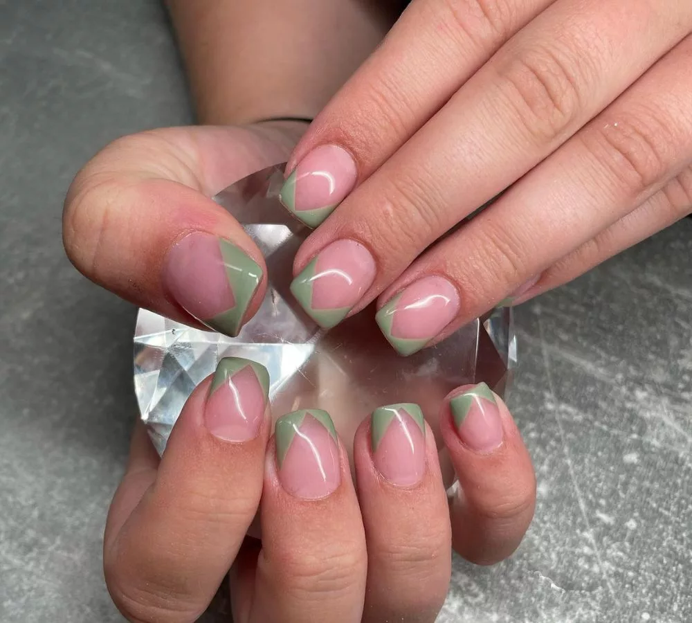 5) Geometric Sage Green Tips