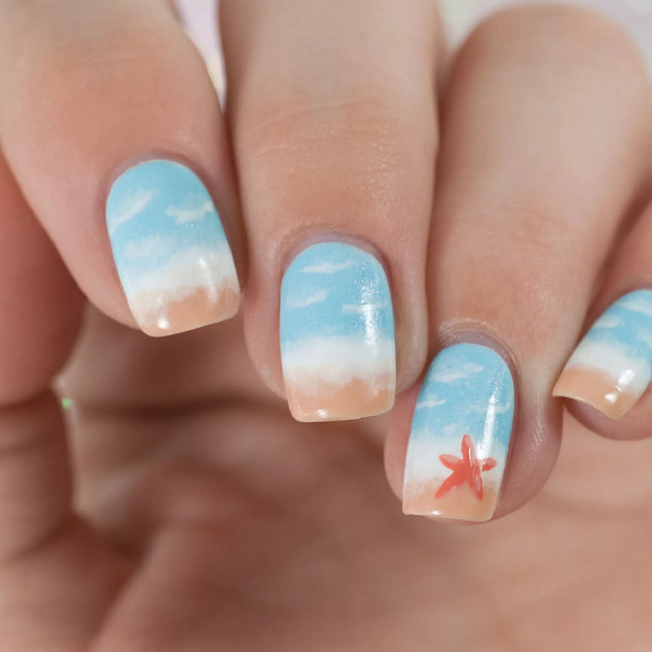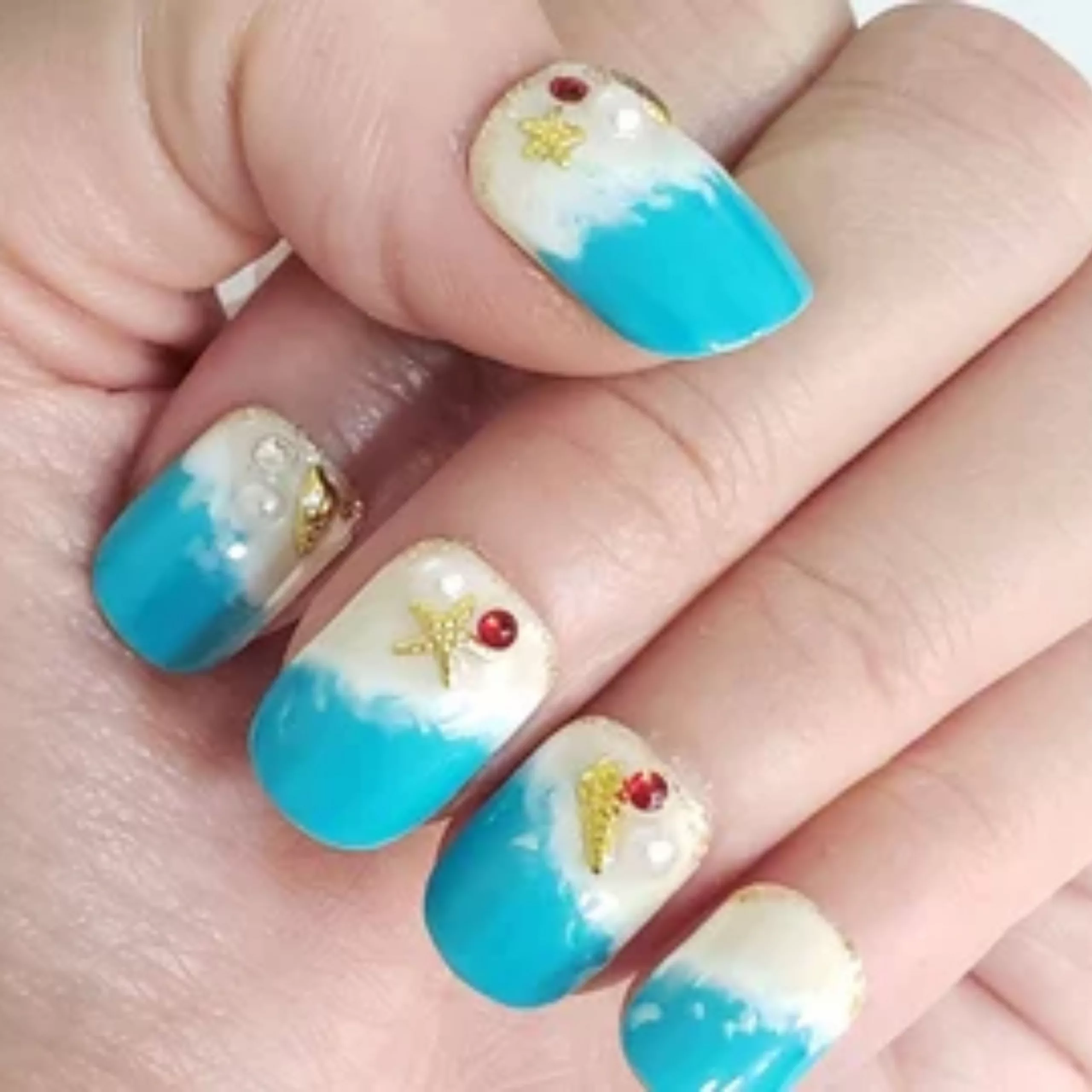 Embrace the beach vibes with acrylic summer nails inspired by the ocean. Use shades of blue and white, along with a wavy design, to create a calming yet stylish look.